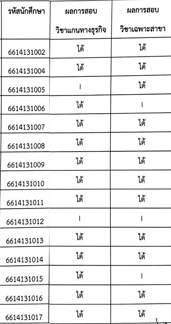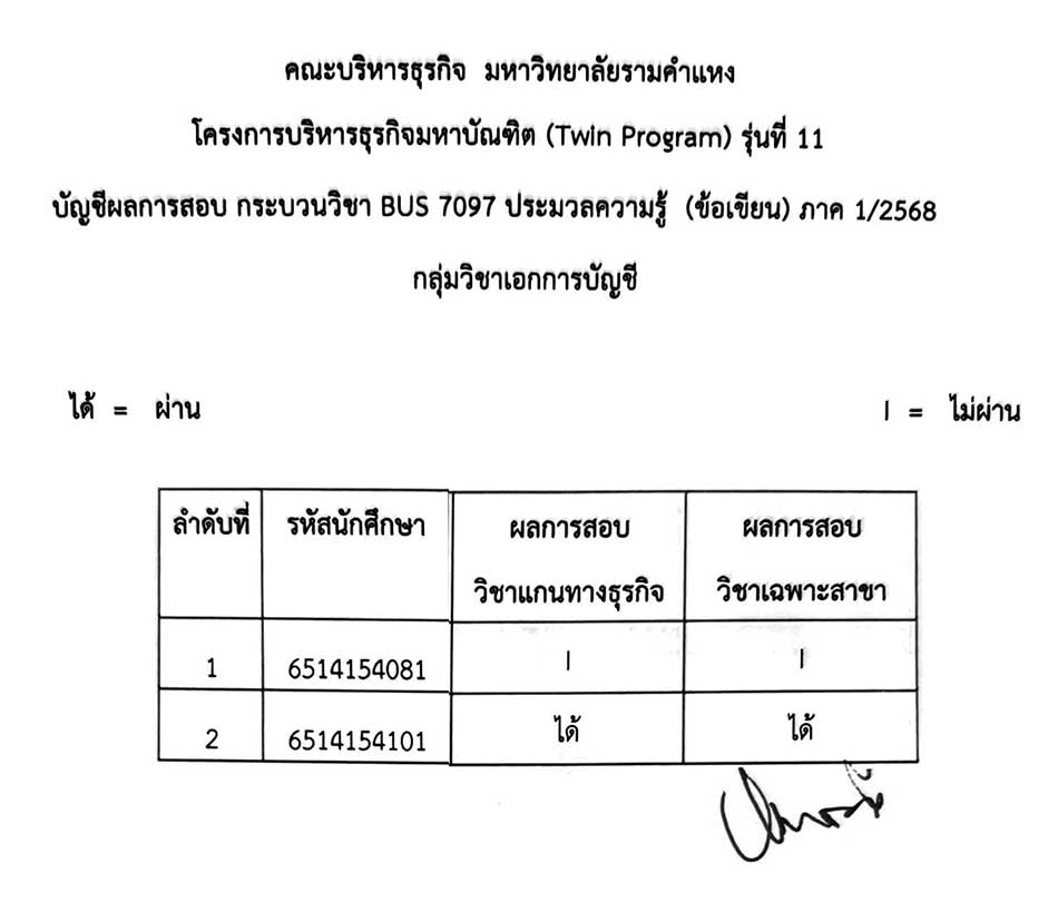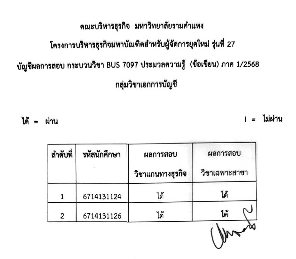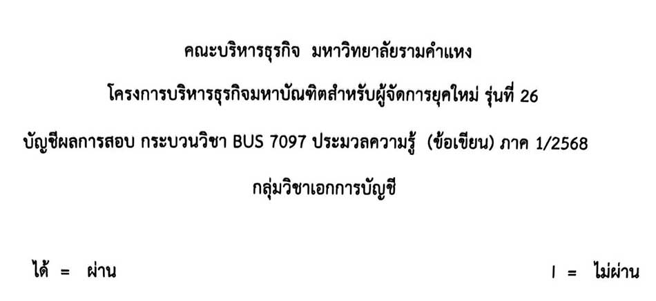 ประกาศผลสอบนักศึกษาระดับปริญญาโท บริหารธุรกิจ (M.B.A.)